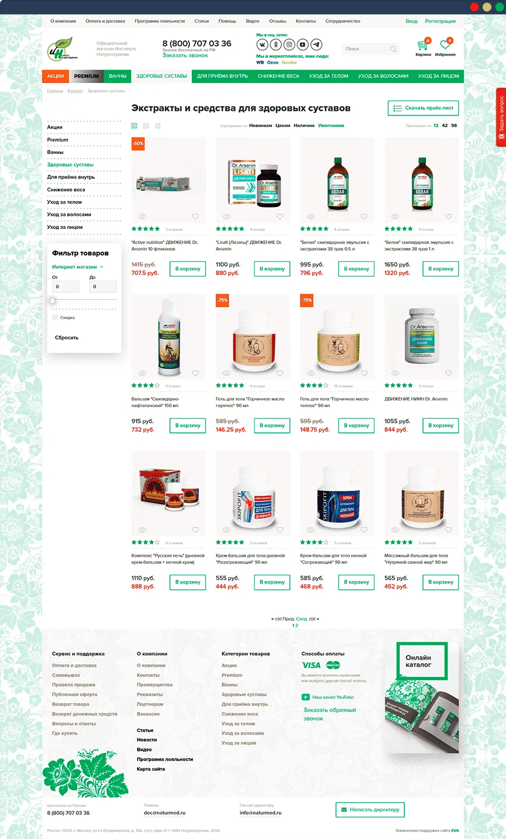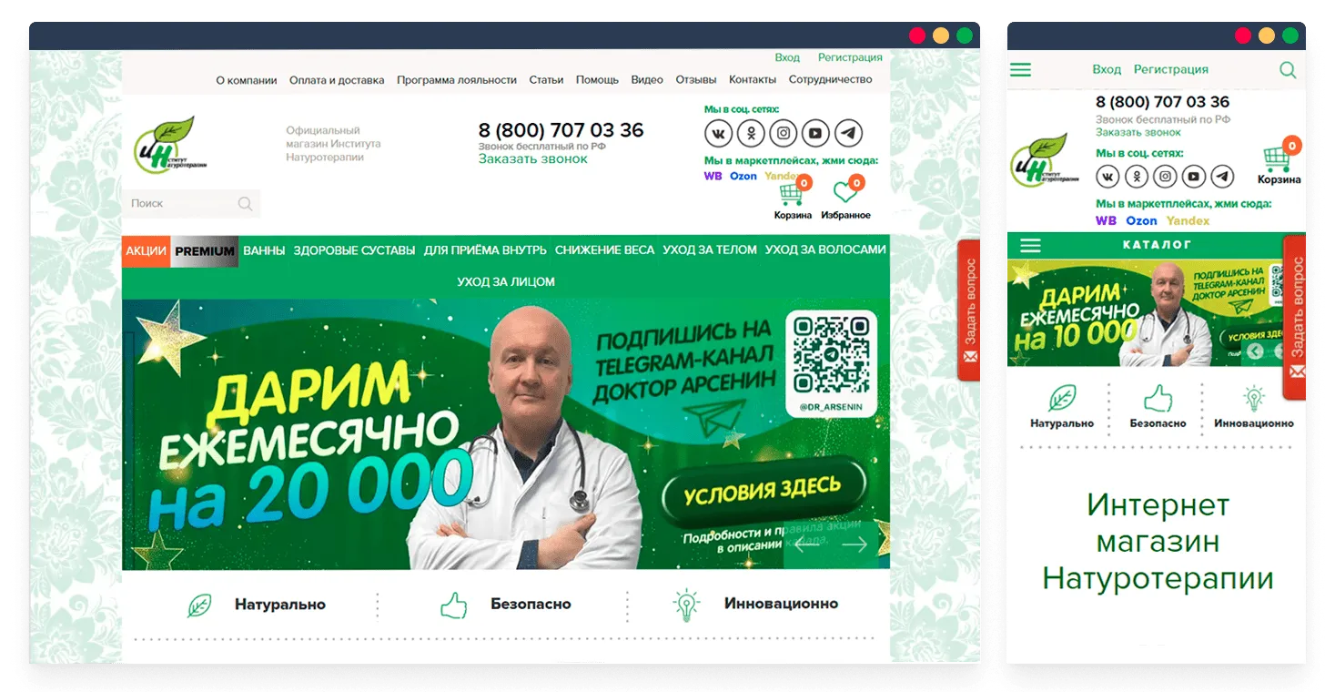 Основной нашей задачей было настроить и доработать сложную систему скидок и обмена данными с 1С, обеспечить корректную работу корзины, доставок, оплат и налогов, устранить ошибки в верстке и пользовательских сценариях, а также поддерживать сайт в актуальном и стабильном состоянии за счёт регулярных обновлений и оптимизации.