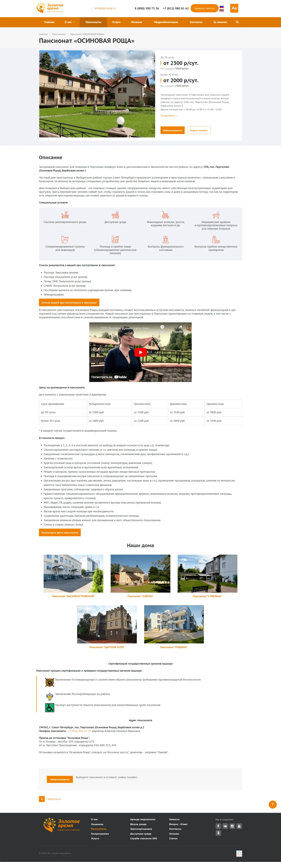 Страница пансионата